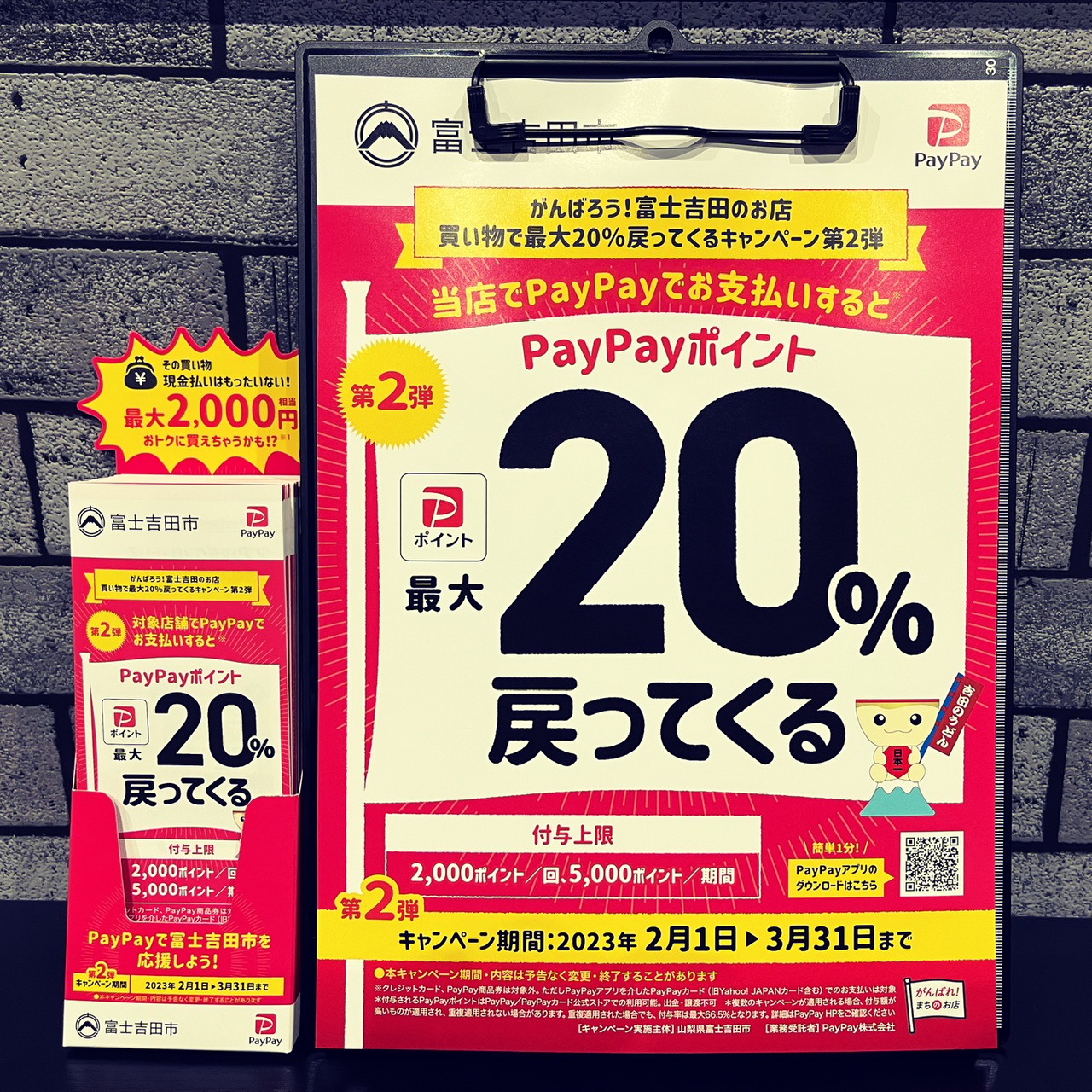 本日2/1から3/31までPayPay支払いにて20%ポイント還元のキャンペーンを開催しています。