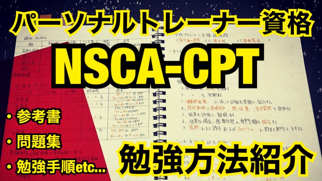 YouTubeを更新しました! https://youtu.be/vzfQSprl2tY 今回は自分が持ってるパーソナルトレーナー資格『NSCA-CPT』のオススメ勉強方法の紹介動画になります! 以前ブログで紹介しましたが、今回は動画verです! -