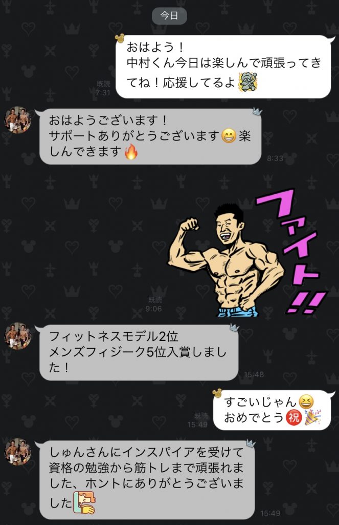 自分も中村くんからモチベーションをもらったのでパーソナルも筋トレも頑張っていこうと改めて思いました。
