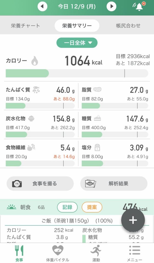 何の栄養素が足りていないのか、取りすぎなのかを一目で確認することごできるので非常に便利です。