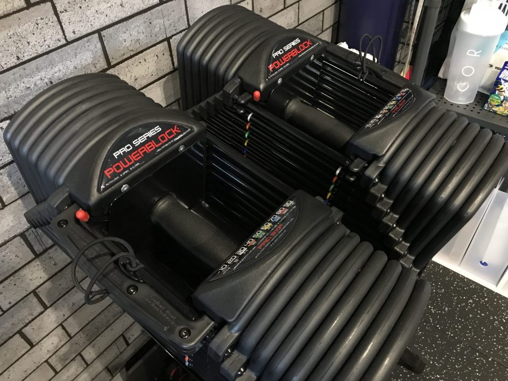 これは一番のお気に入りの器具、可変式ダンベルのパワーブロックのプロタイプです。