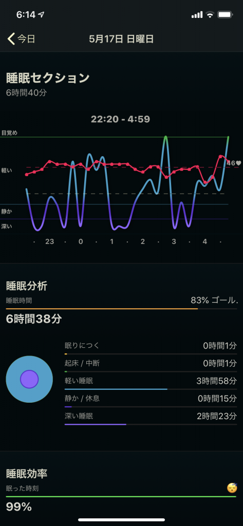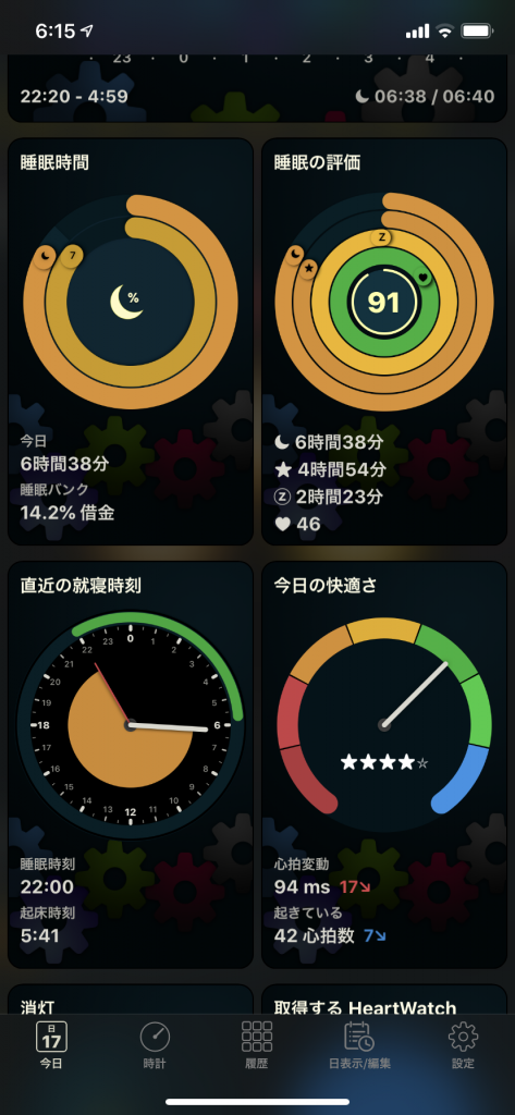 どのくらい寝たのかや、その日の快適度、深い睡眠時間なども記録してくれます。